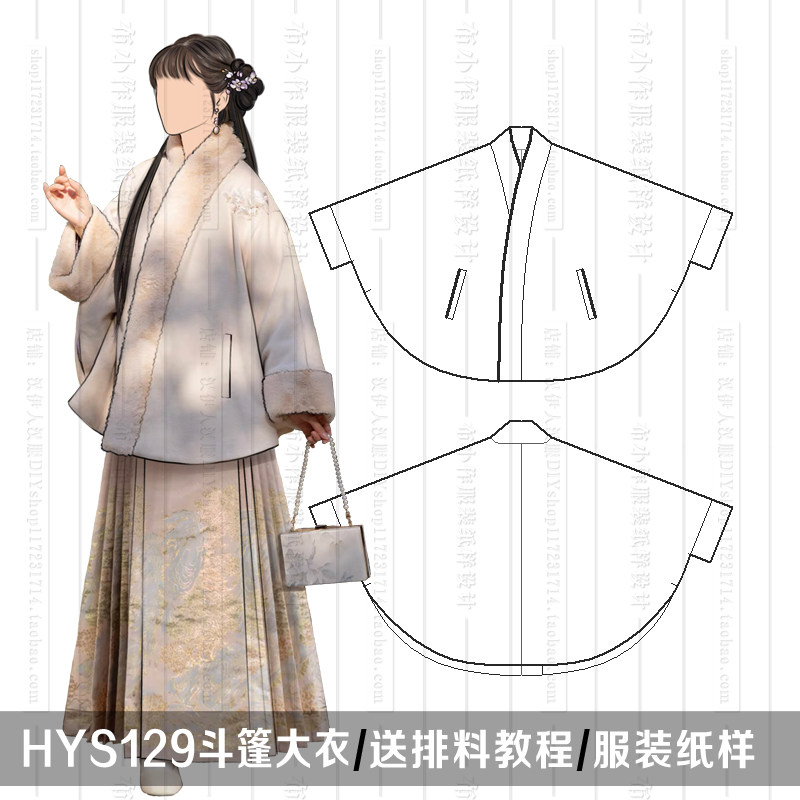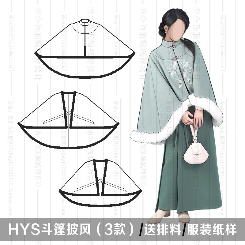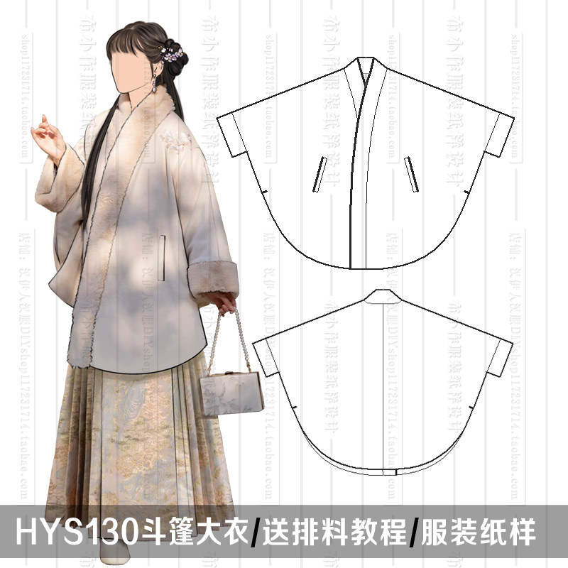 1:1实物纸样 斗篷大衣 秋冬 汉元素纸样 服装制版 汉伊人手工diy