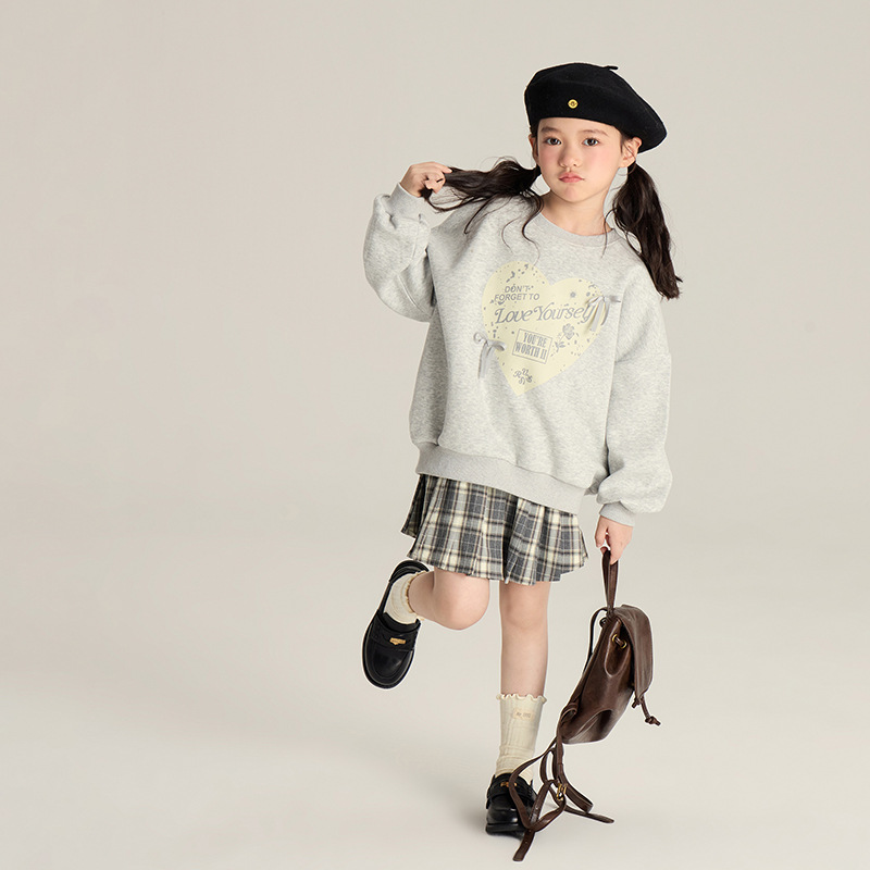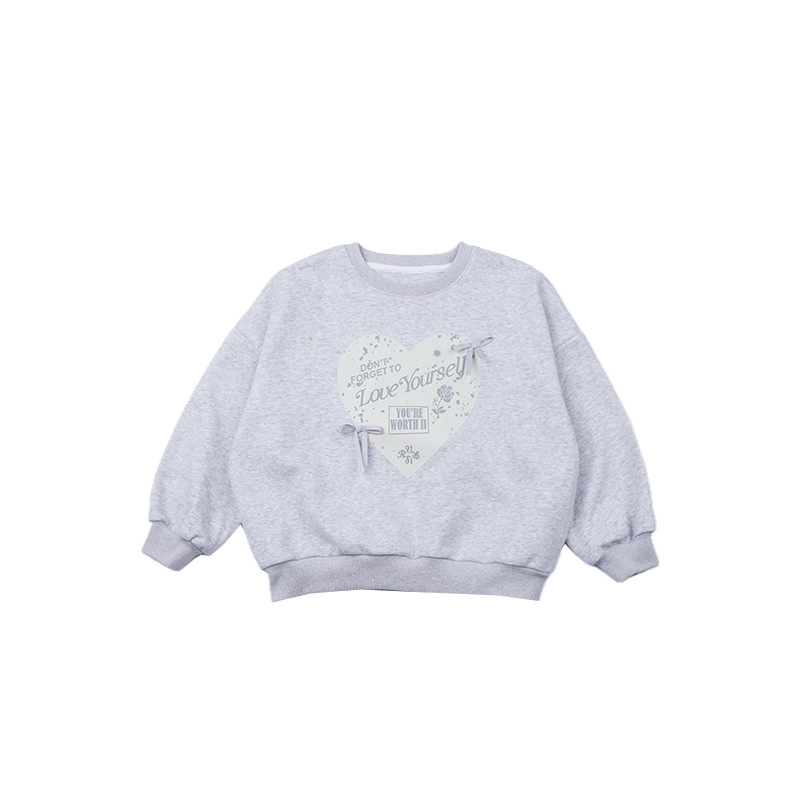乔伊思童装女童卫衣春秋2025洋气爱心字母儿童宽松蝴蝶结圆领上衣
