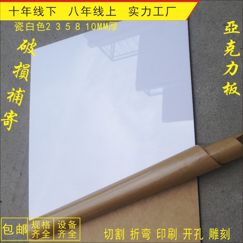 瓷白色亚克力板材加工定制1-20MM厚切割雕刻定做塑料饰面有机玻璃