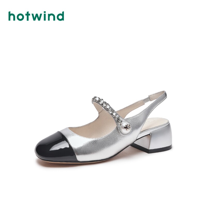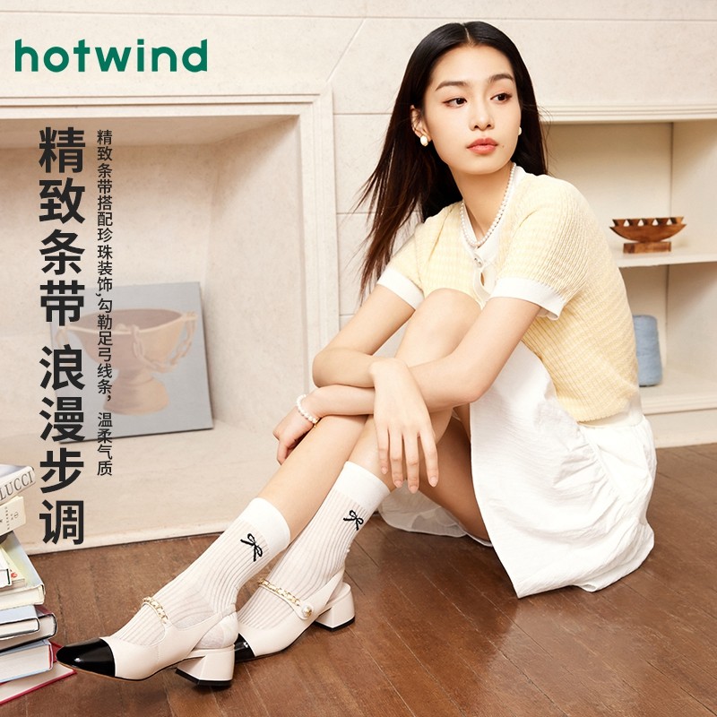 热风2025年夏季新款女士时尚圆头粗跟休闲鞋甜美百搭浅口单鞋ins