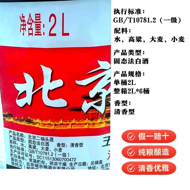 北京二锅头56度50度42度清香型白酒2L桶装粮食酒原浆酒泡药用酒