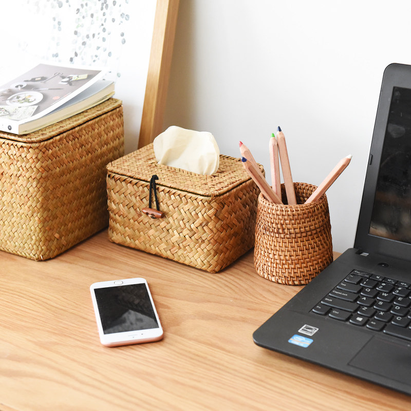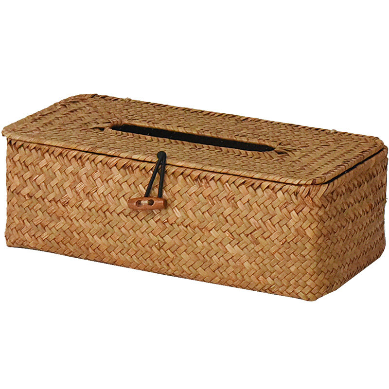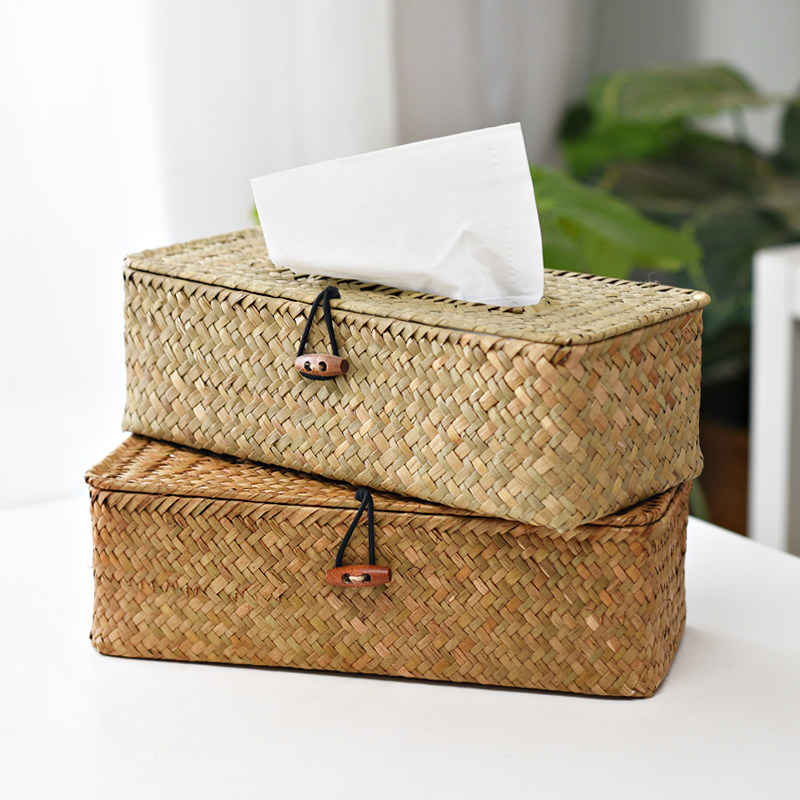 复古藤编收纳盒海草编纸巾盒餐巾纸盒竹编抽纸盒收纳筐桌面编织篮
