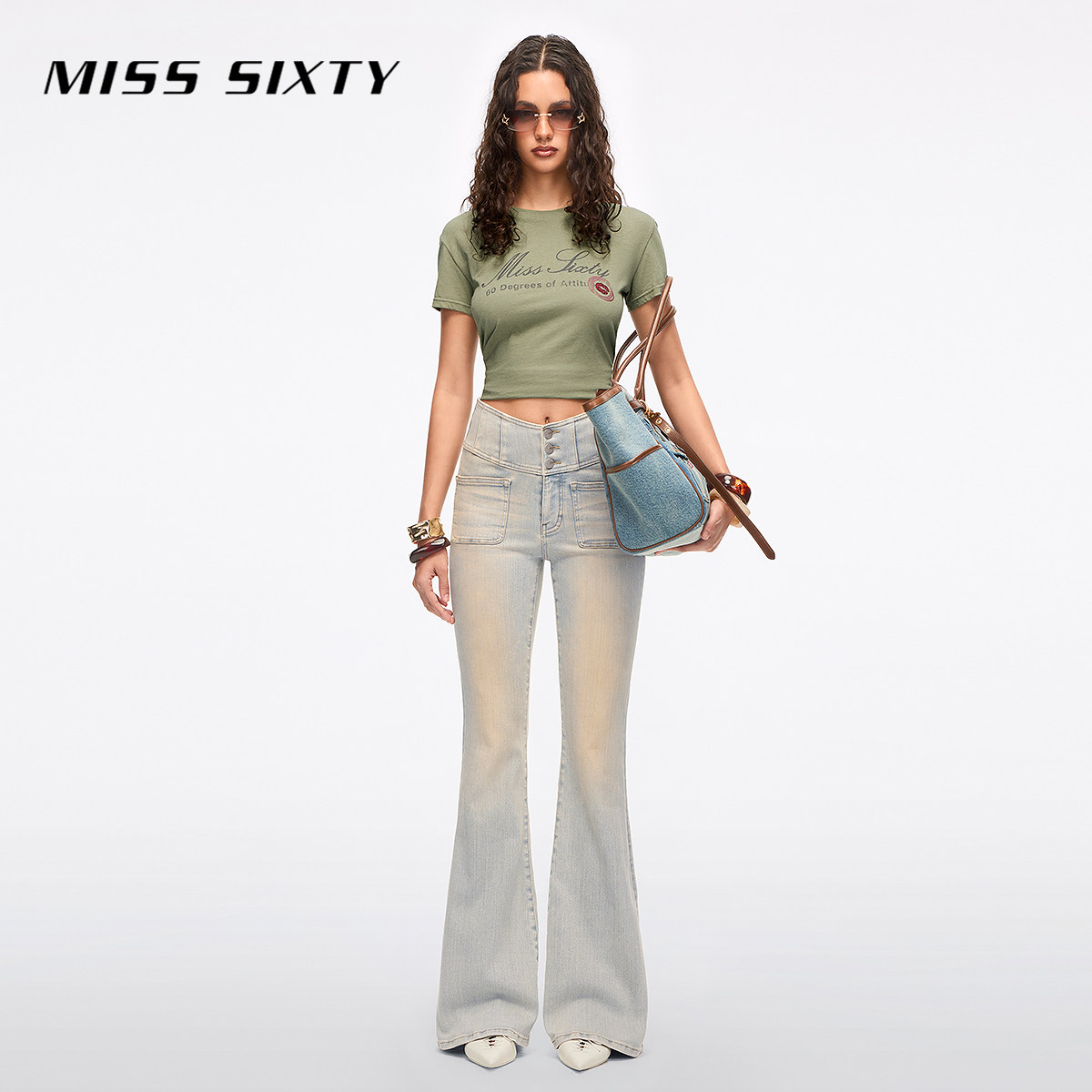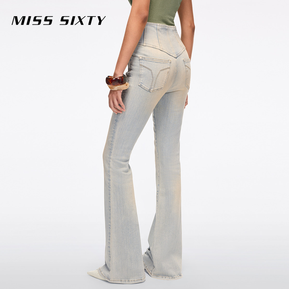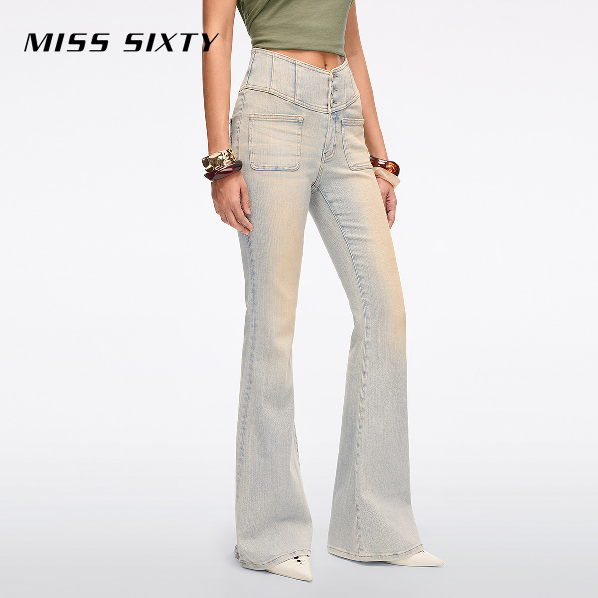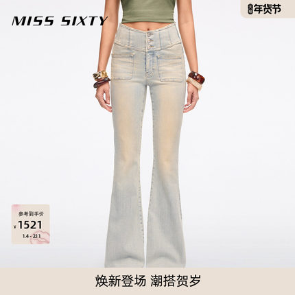 【进口牛仔面料】Miss Sixty2026春季新款牛仔裤女修身喇叭超模裤