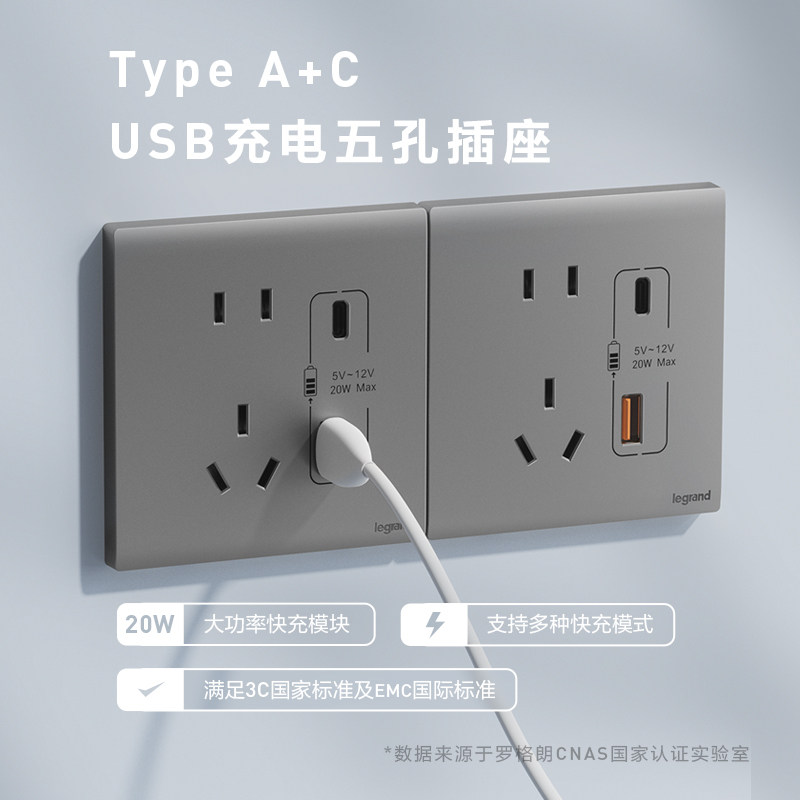 罗格朗开关插座面板家用86型墙壁茗画深砂银色五孔单双控空调暗装