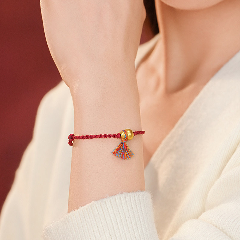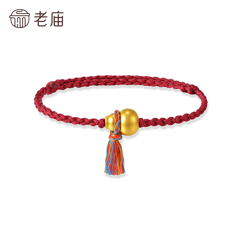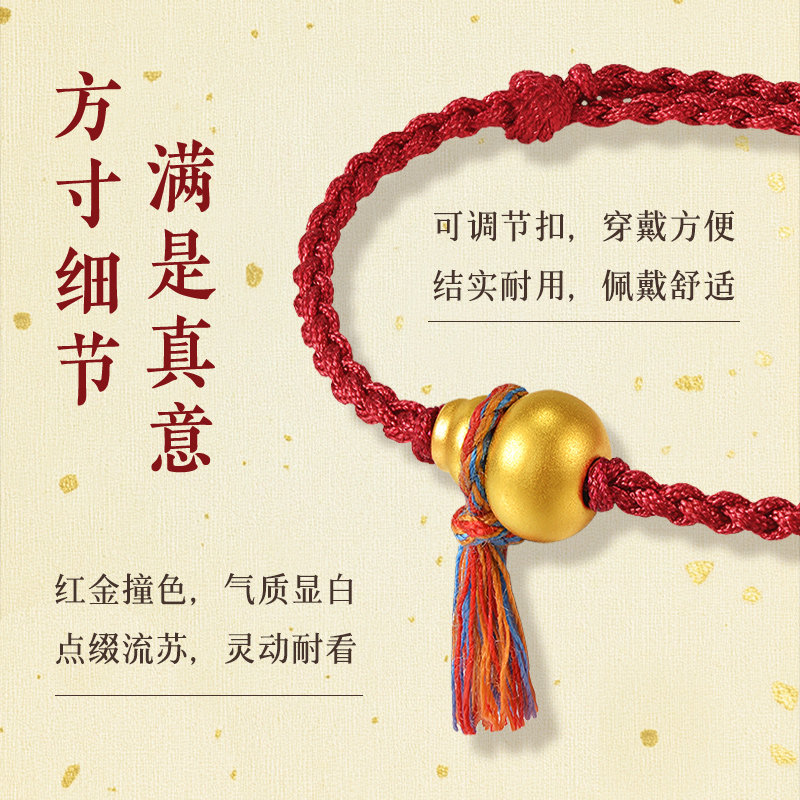 老庙黄金足金葫芦手绳5D饱满葫芦福禄吉祥彩绳系福红金撞色气质