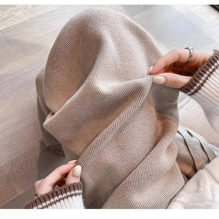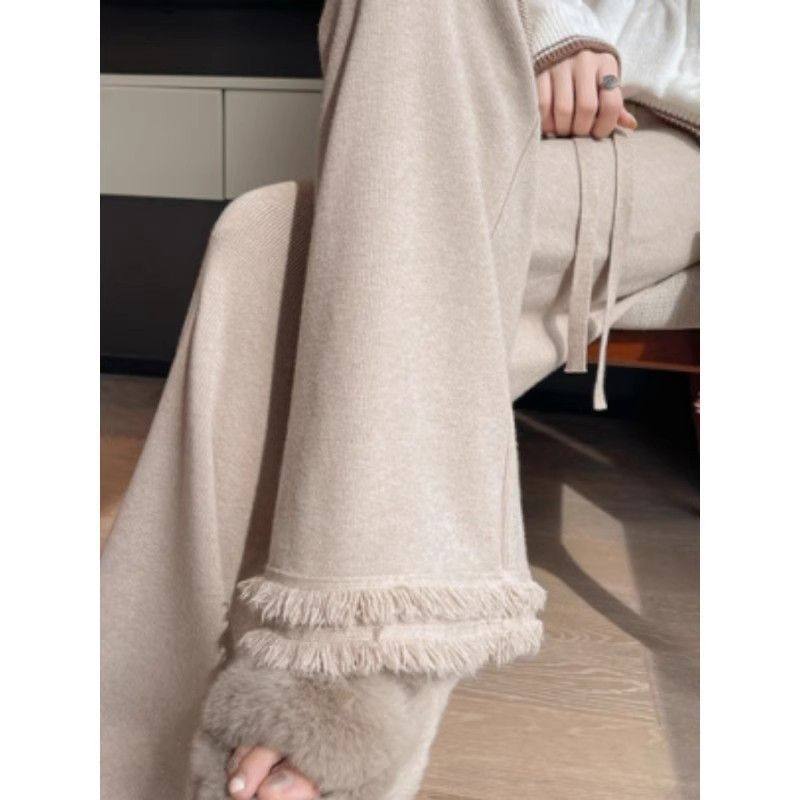 燕麦色加绒糯米裤女秋冬季高腰垂坠感软糯针织流苏毛边窄版阔腿裤