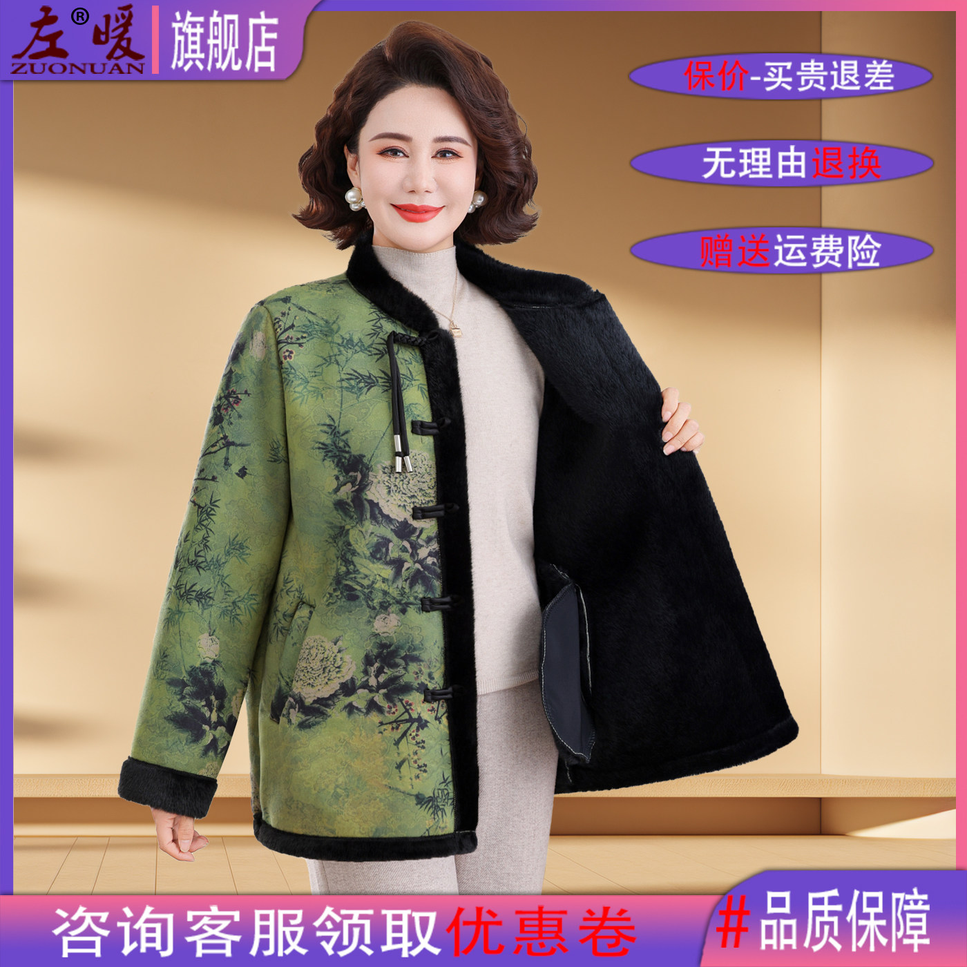 新中式风仿貂绒外套女大码妈妈装