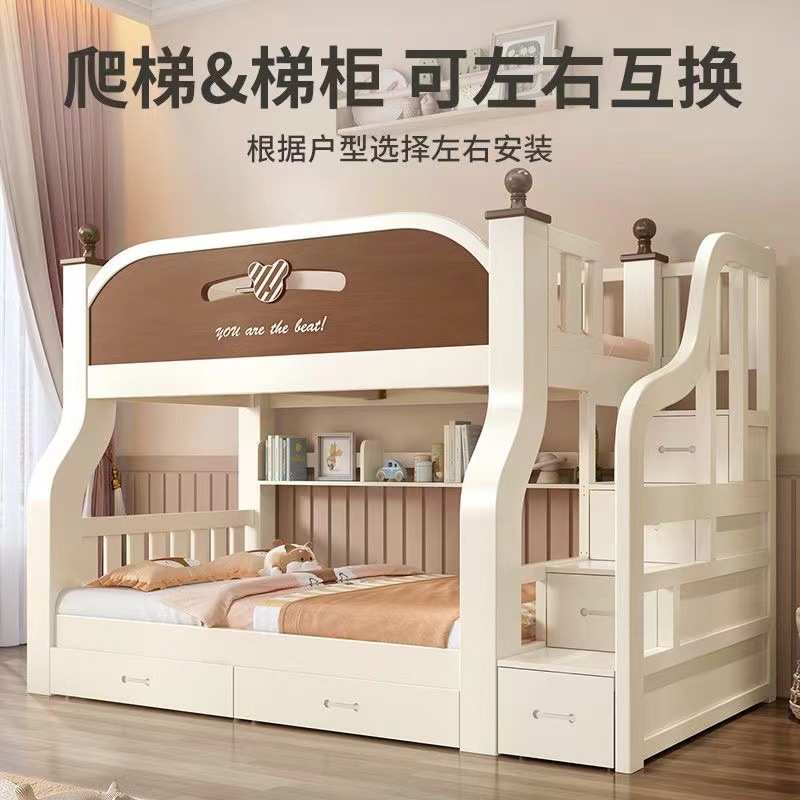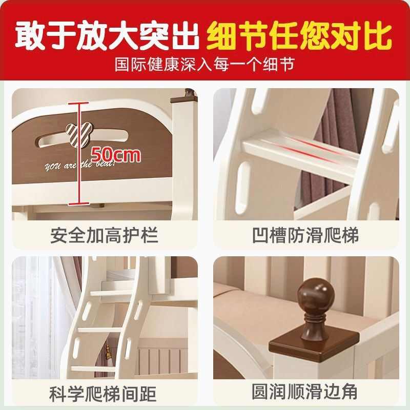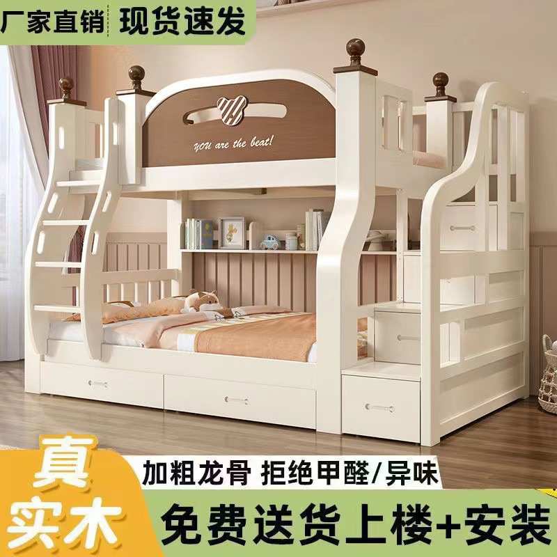 现代简约双层床小户型高低床上下铺双人床全实木儿童组合母子床