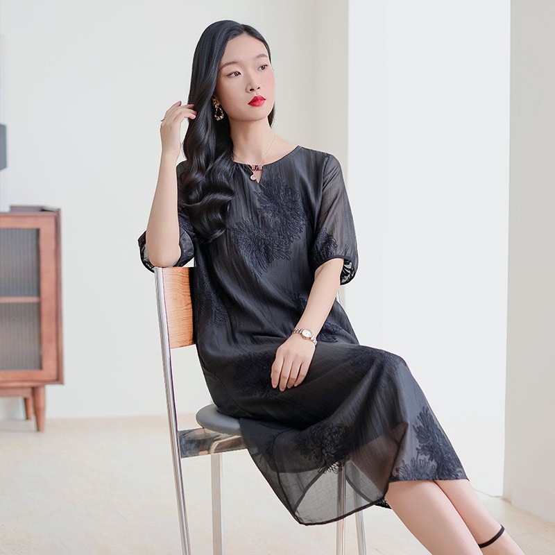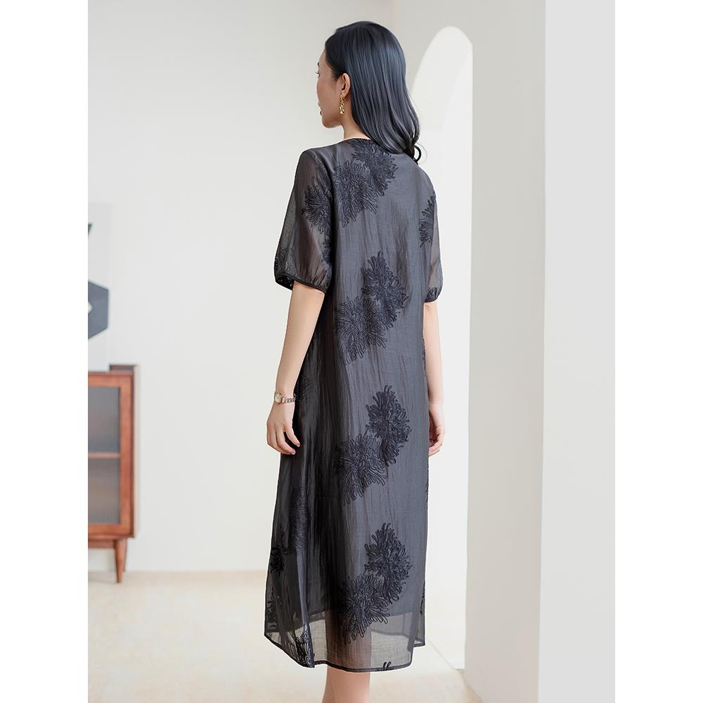 国风轻奢新中式高级刺绣设计连衣裙女夏季气质时尚宽松显瘦中长裙