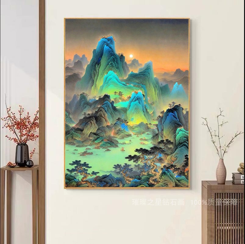 钻石画2025新款满钻风景绿水青山千里江山图客厅点贴钻十字绣卧室