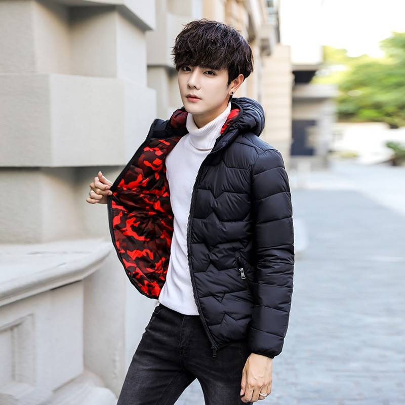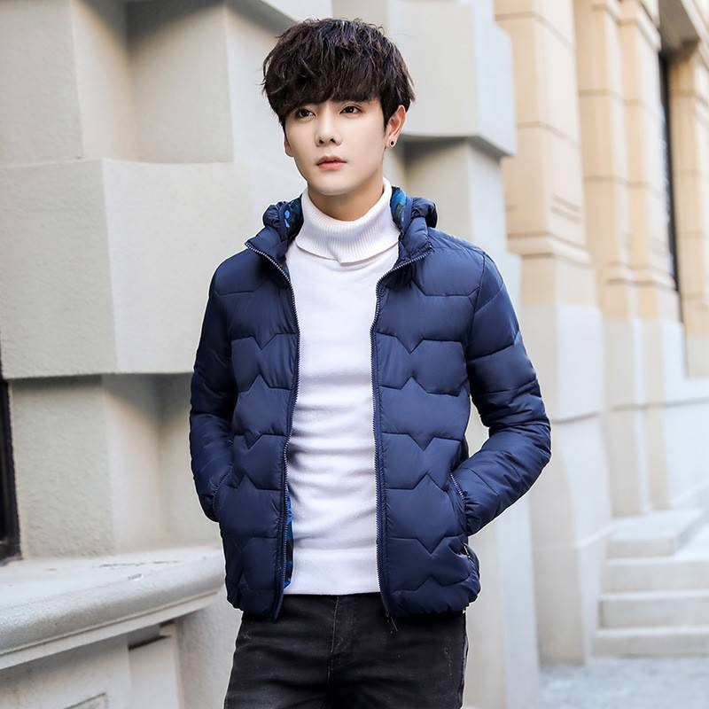 新款青少年棉衣男潮流短款保暖连帽男式棉服韩版简约百搭棉衣外套