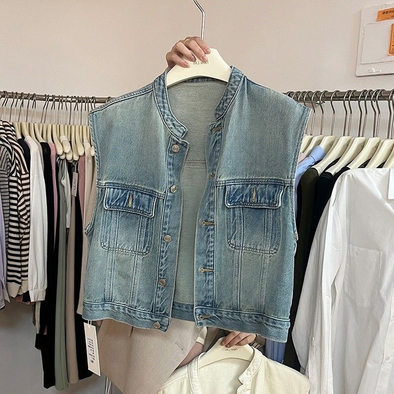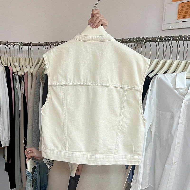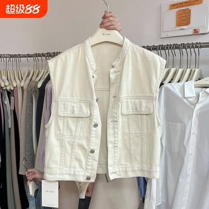 时尚女童春秋季新款复古牛仔马甲休闲叠穿儿童坎肩外套白色韩版
