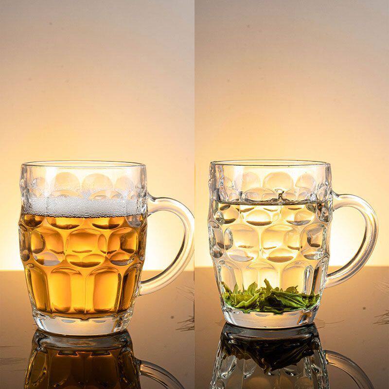 家用玻璃杯子水杯大号啤酒杯菠萝杯网红带把杯茶杯扎啤酒杯660ml