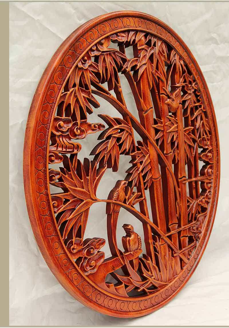 东阳木雕挂件 香樟木头雕刻画工艺品中式客厅实木质艺术墙壁装饰