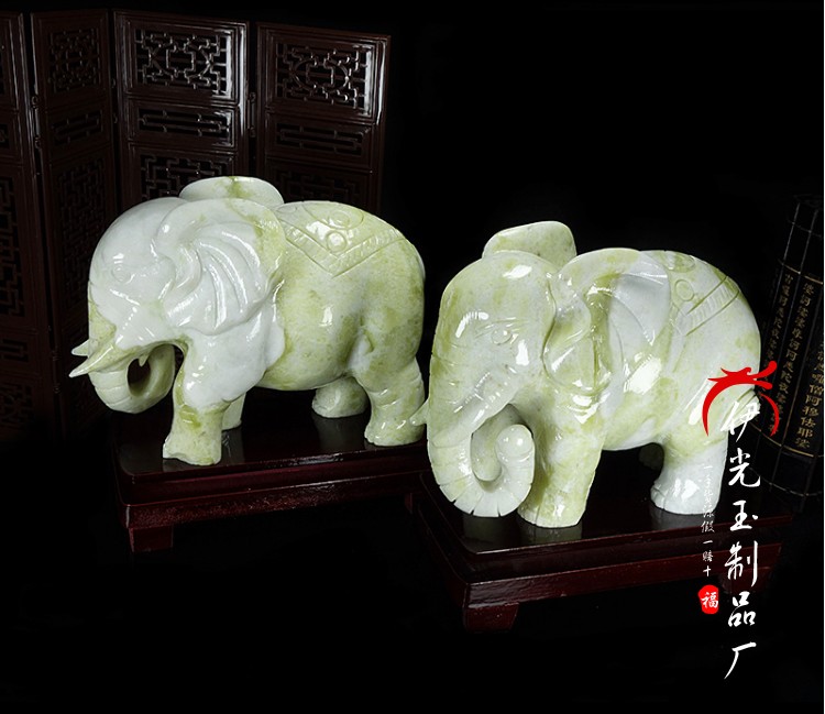 天然蓝田玉大象摆件招財岫岩玉石大象摆设家居玄关吸财吸水象摆摆