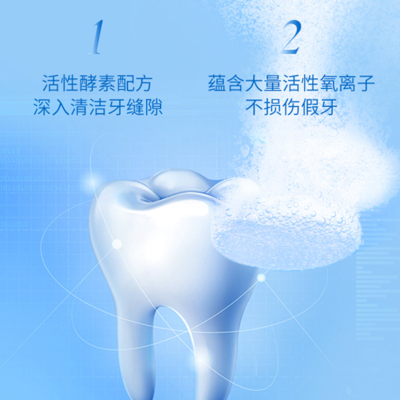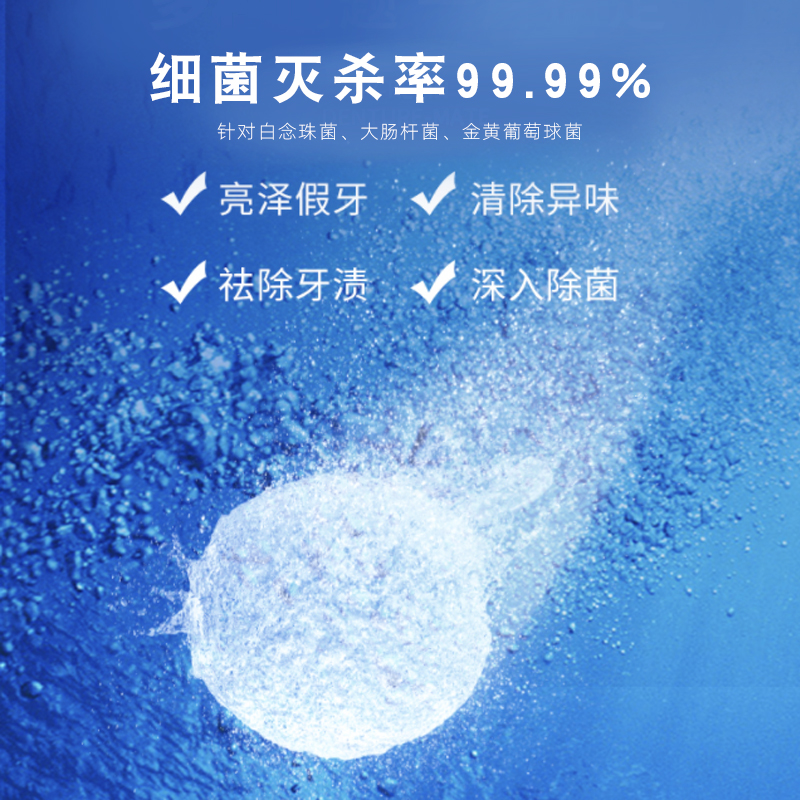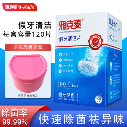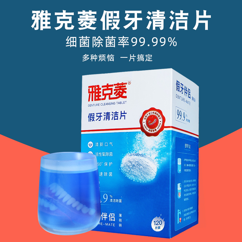 雅克菱假牙清洁片120片赠双层假牙盒 清洗器泡腾片洗白异味消毒