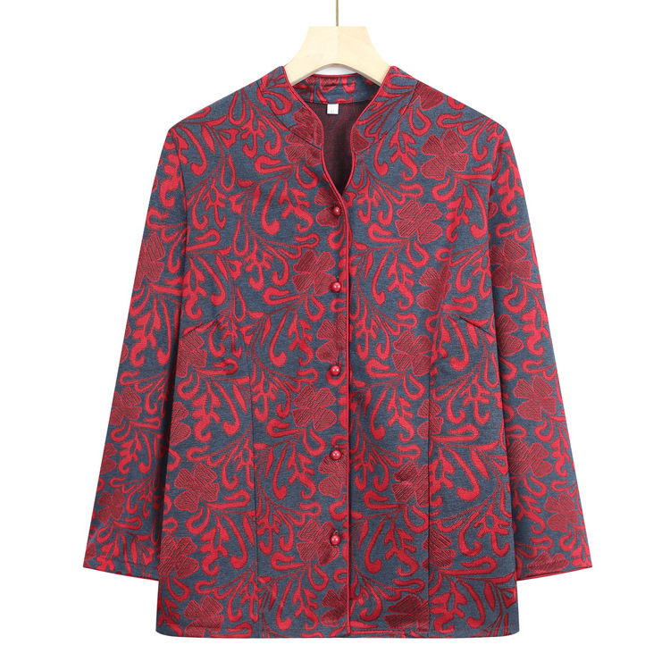 日式良品奶奶春装长袖唐装衬衫中老年女装春秋季薄款外套妈妈老人