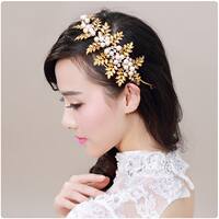 韩式新娘金色叶子发箍婚纱配饰品巴洛克皇冠头饰新娘珍珠水钻发饰