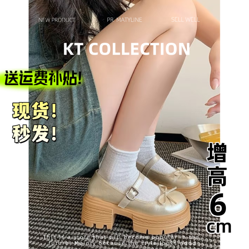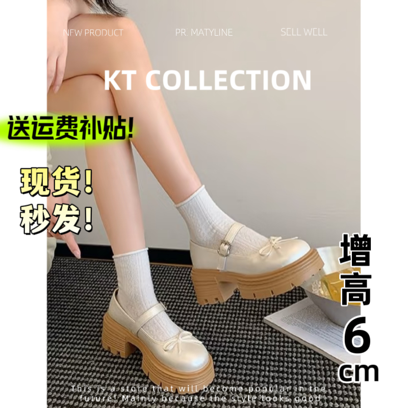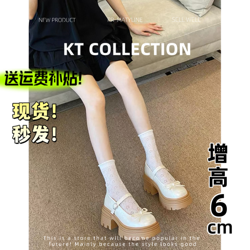 羊皮版!增高6cm~法式复古玛丽珍鞋女新款浅口单鞋粗跟小皮鞋