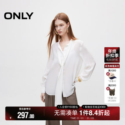 【醋纤】ONLY冬季法式优雅通勤系带设计感雪纺长袖衬衫女