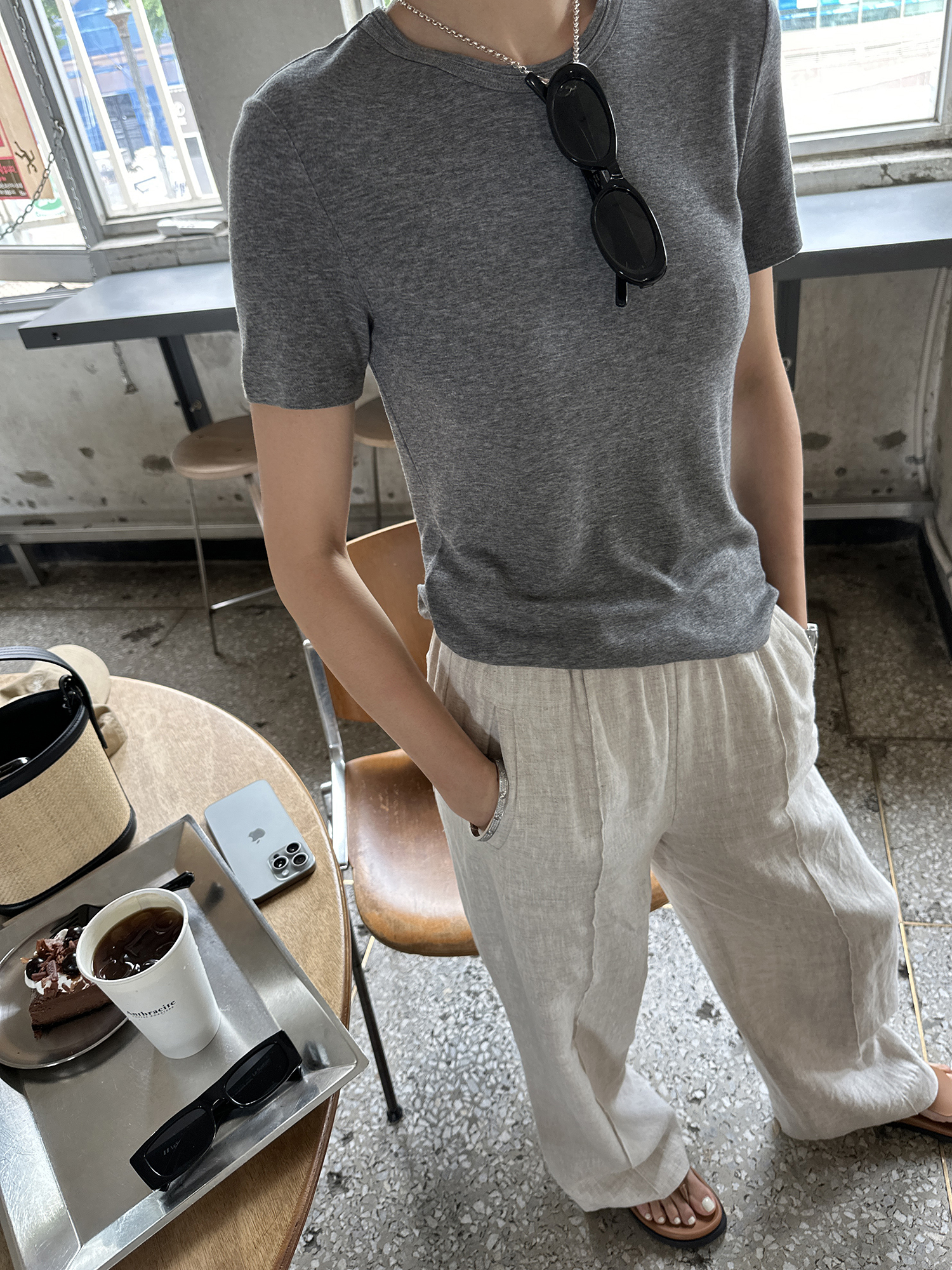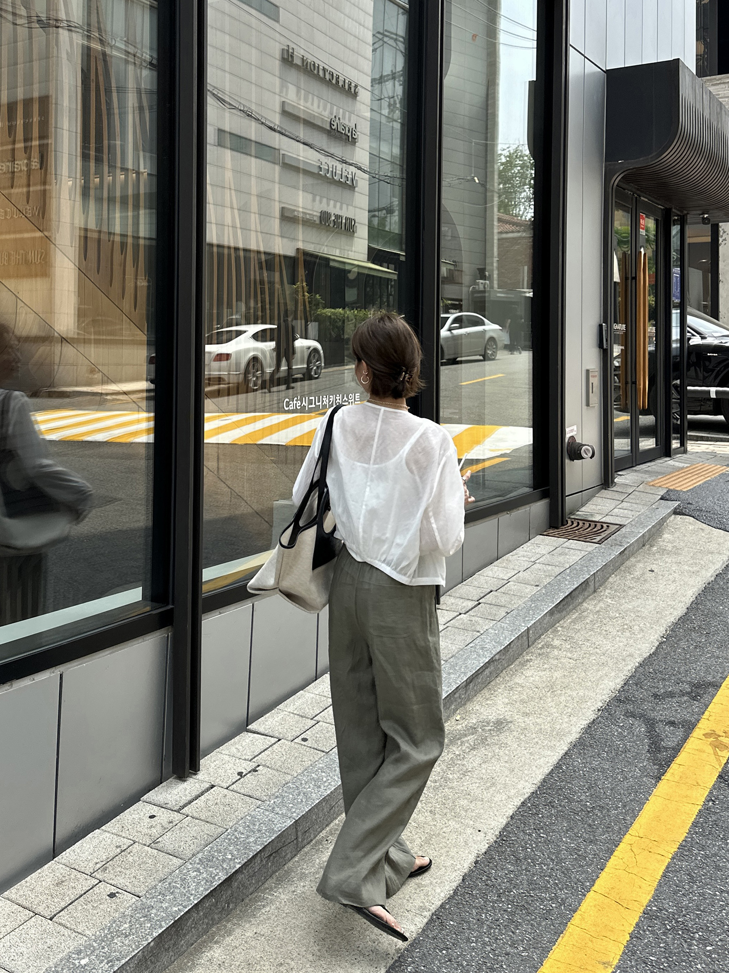 YANGLE_亚麻休闲裤女2025秋新款高腰宽松薄款简约垂感直筒拖地裤