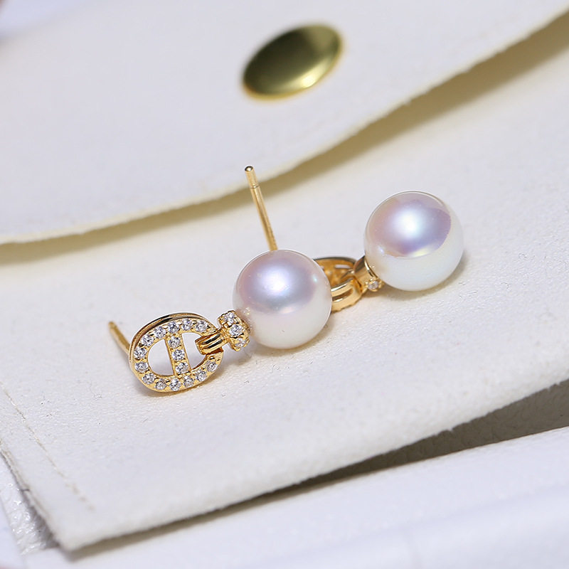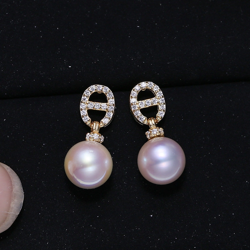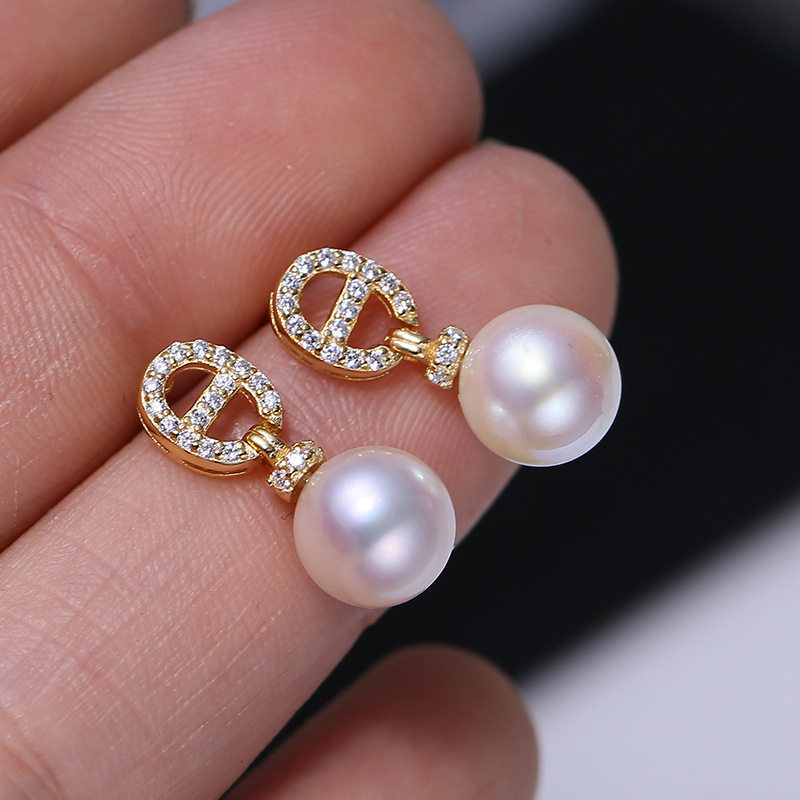 DIY配件S925纯银锆石款猪鼻子珍珠耳钉耳环空托 时尚耳坠银托7-12
