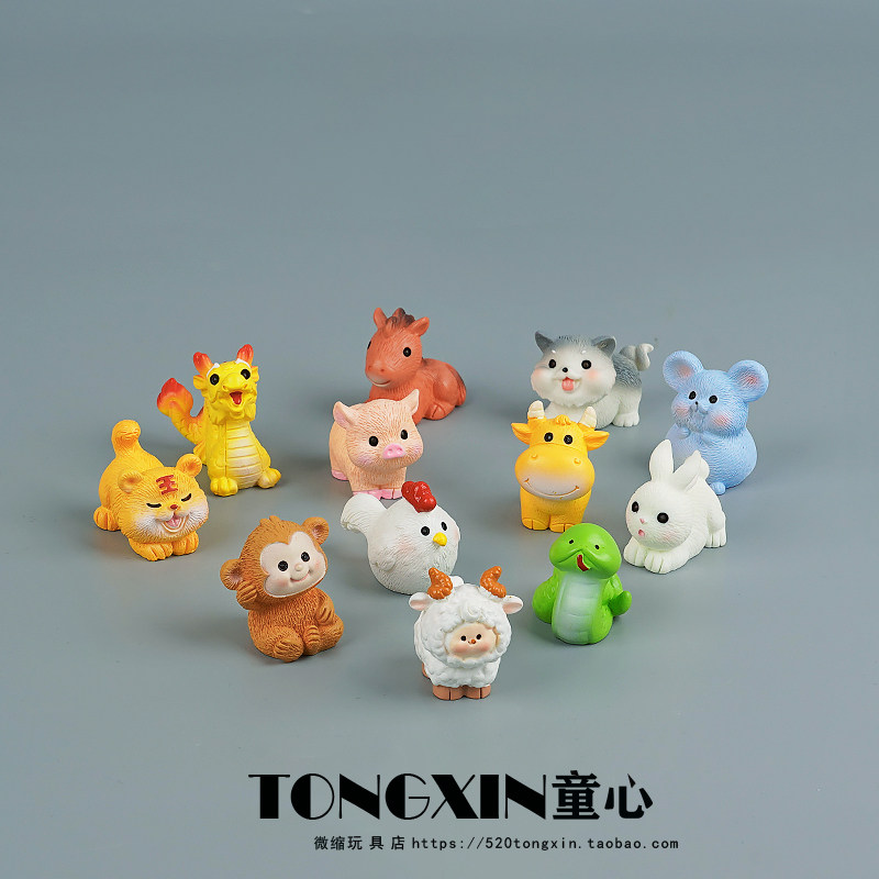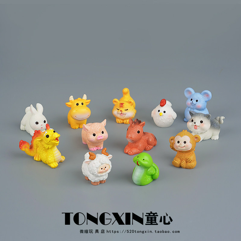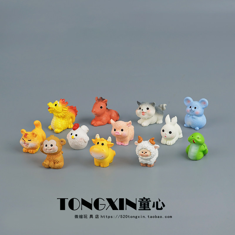 卡通十二生肖迷你可爱公仔动物模型摆件儿童玩具桌面书房装饰玩偶