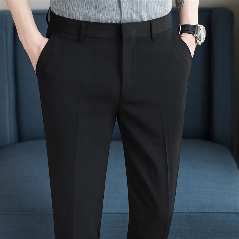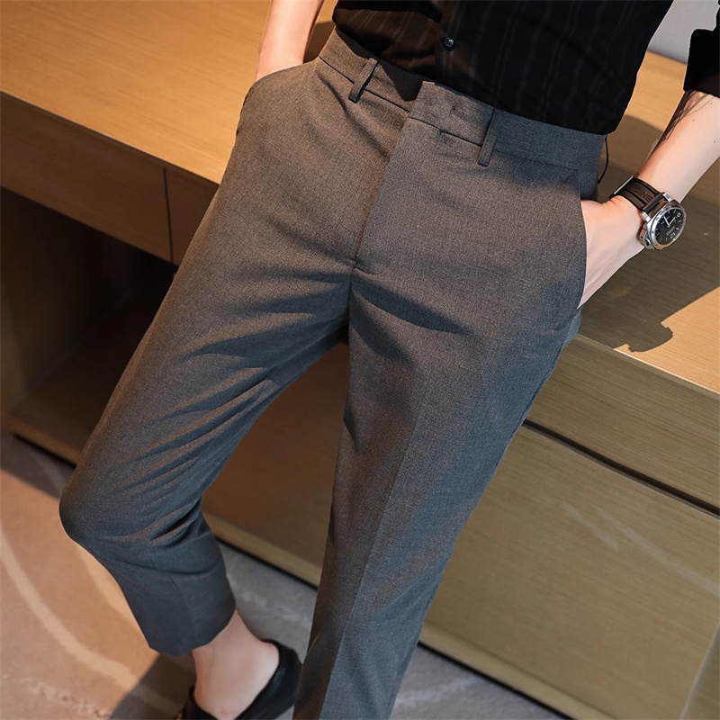 潮牌休闲西裤男春秋季修身小脚高级感英伦风垂感商务九分西装裤子