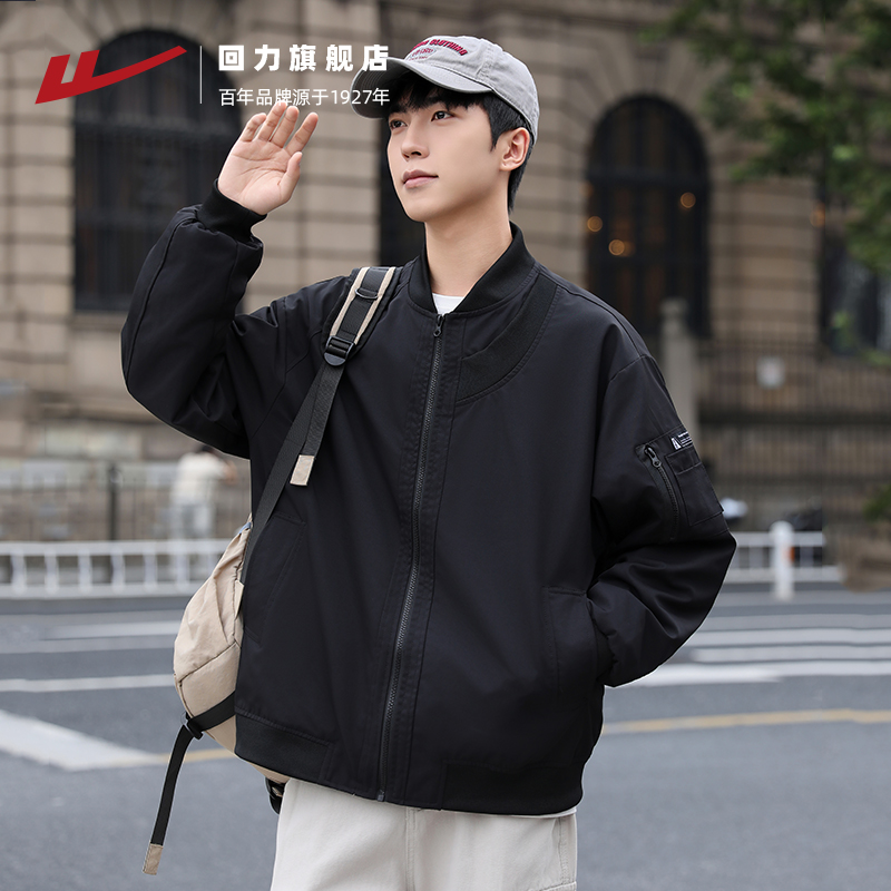 回力飞行员夹克外套男新款秋冬加厚美式工装棒球棉服秋季休闲男装