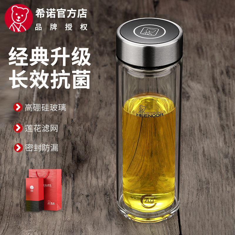希诺双层玻璃杯银离子抗菌杯男女泡茶口杯茶杯子车载旅行办公水杯