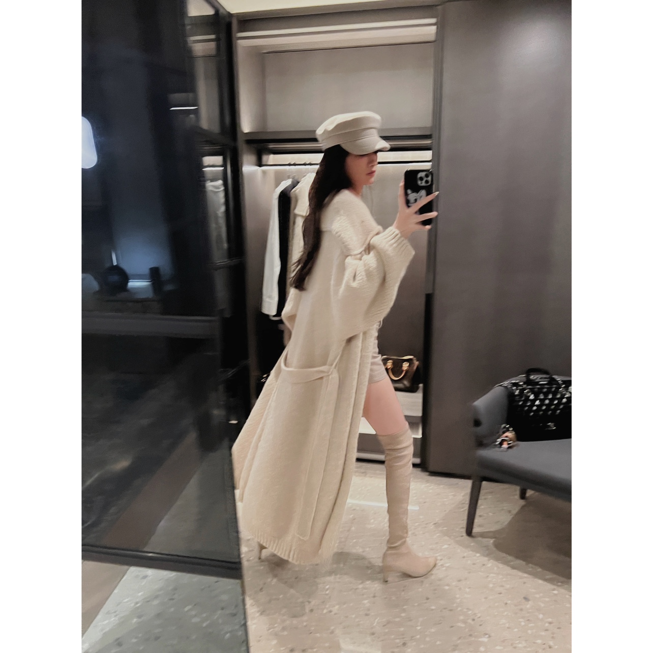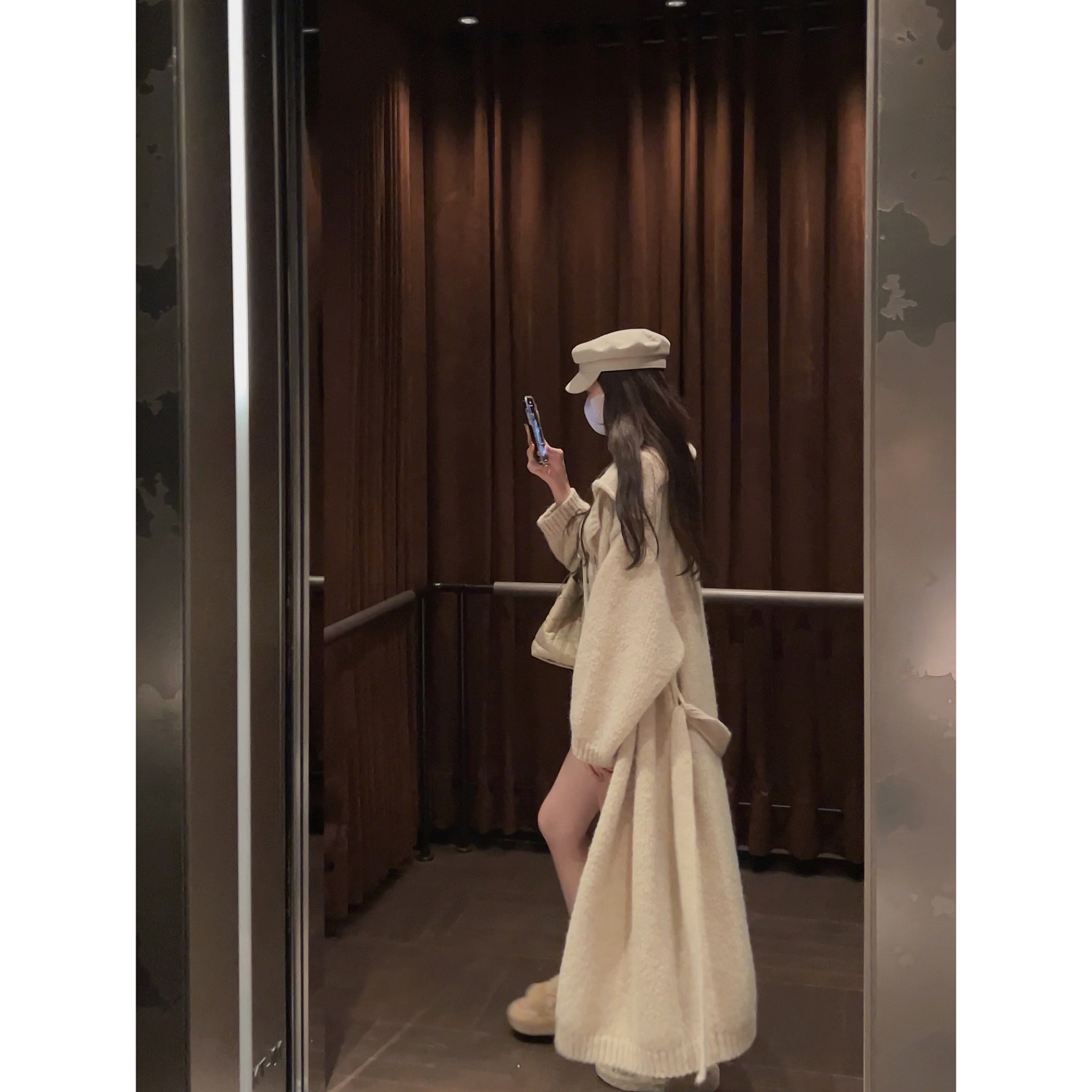 IN MIMIFACE 秋季翻领宽松中长款毛衣外套女2024慵懒风针织大开衫