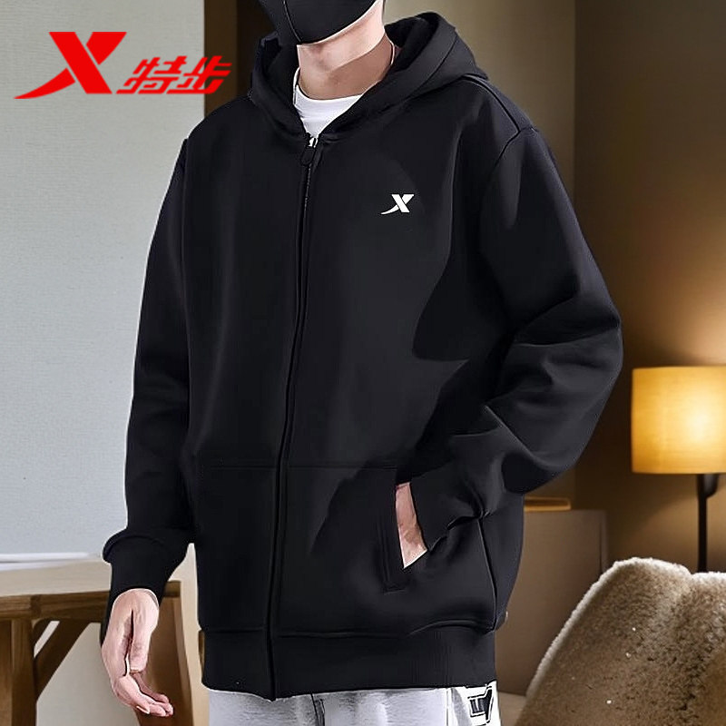 特步外套男装春秋2025新款男款官方旗舰店薄款开衫立领卫衣夹克男