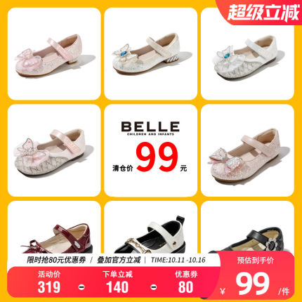 【99元优惠清仓】百丽童鞋洋气百搭闪钻公主鞋女童软底皮鞋宝宝鞋
