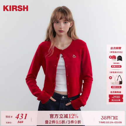 【宋祖儿同款】樱桃KIRSH 红色羊毛开衫外套女2026春韩版针织衫