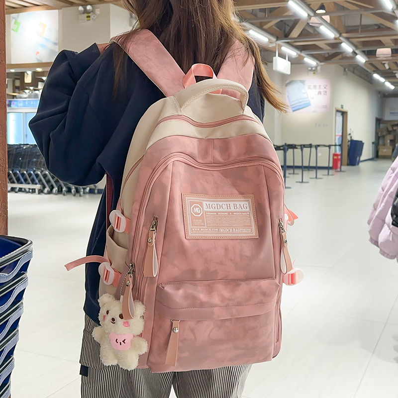 日系ins原创小众拼色扎染书包女初中生高中学生双肩包大学生背包
