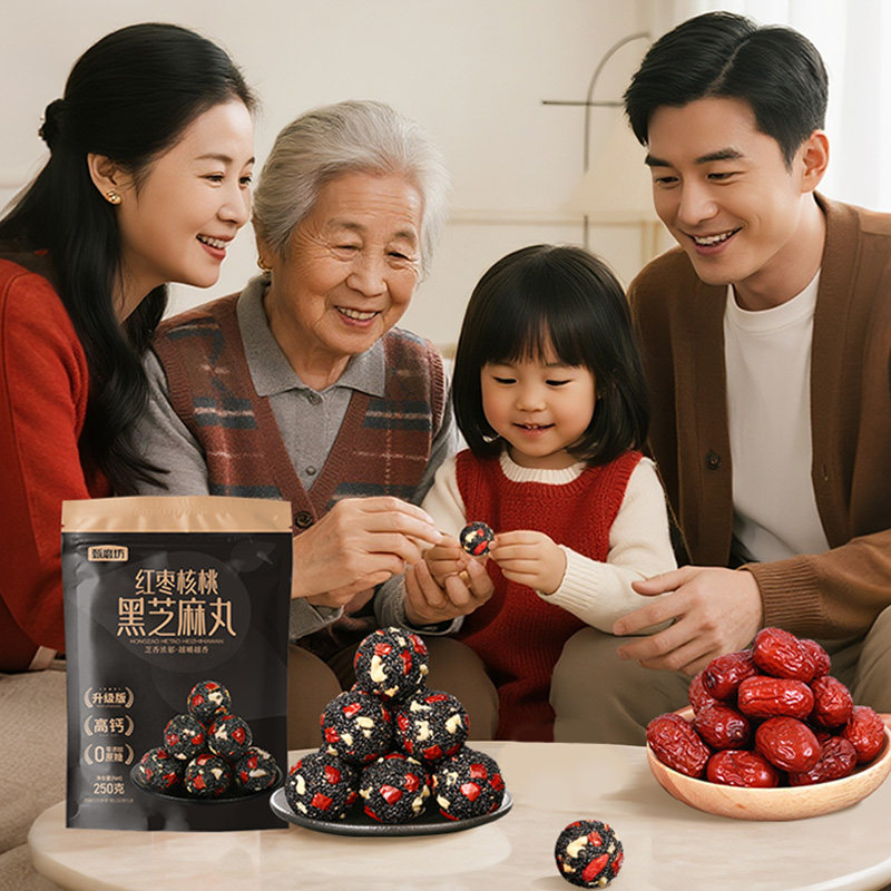 甄磨坊红枣核桃黑芝麻丸无蔗糖芝麻球孕妇零食独立小包装开袋即食
