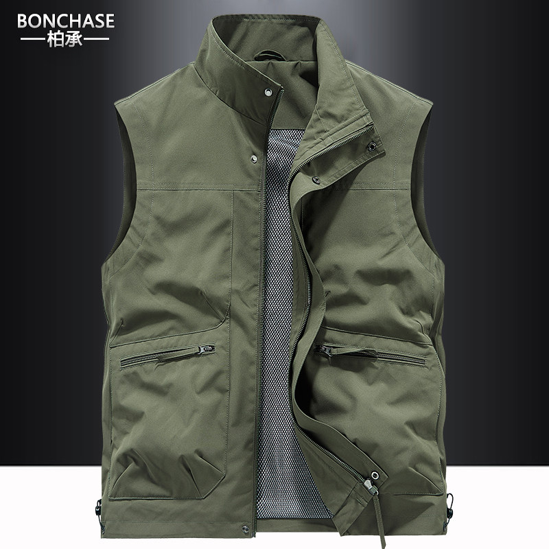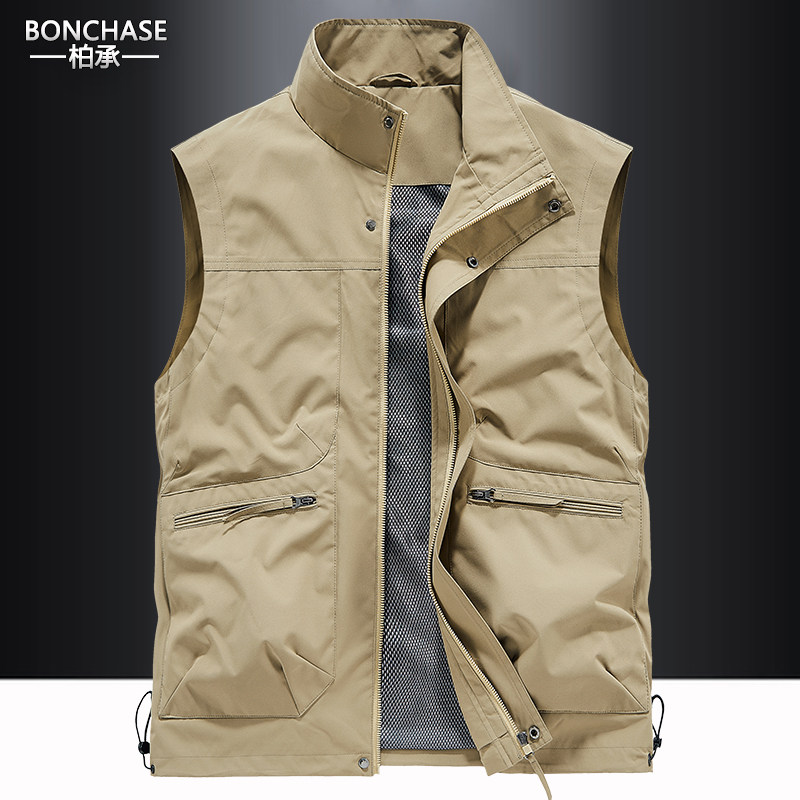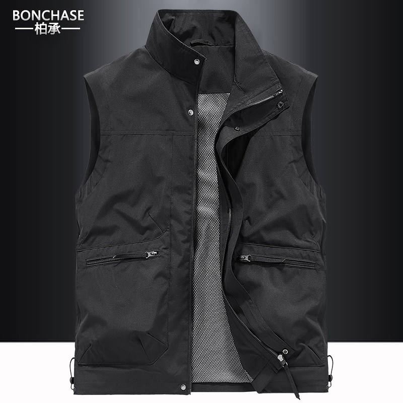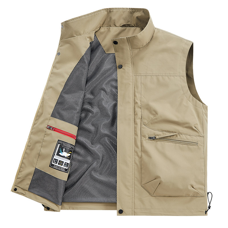 男士户外春秋马甲休闲多袋工装背心宽松大码速干立领坎肩马夹外套
