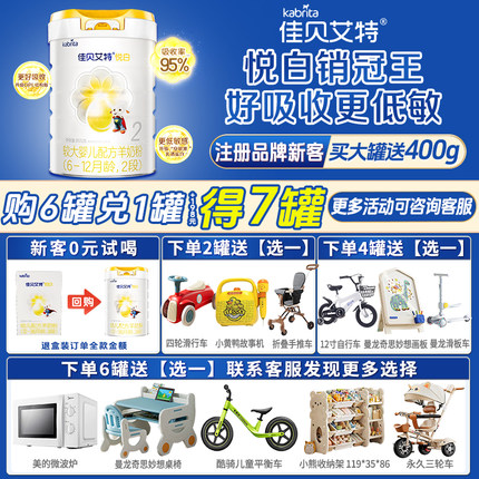 新国标 佳贝艾特悦白2段800g婴幼儿低敏二段好吸收官方正品羊奶粉