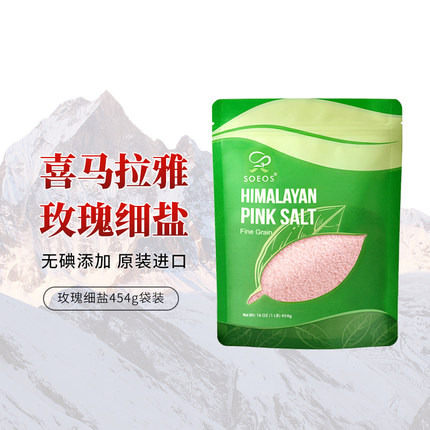 SOEOS喜马拉雅盐天然原装进口玫瑰细盐无碘无抗结剂袋装玫瑰粉盐