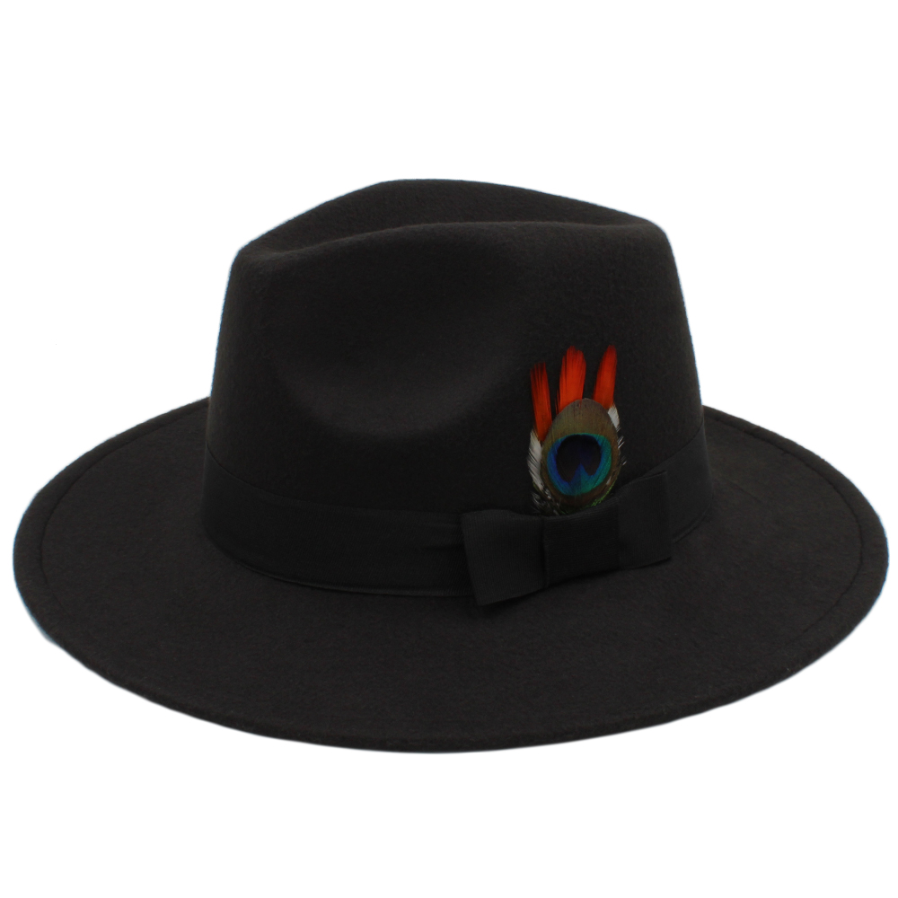 秋冬羽毛毛呢帽女英伦礼帽防晒宽檐上海滩亲子男巴拿马情侣帽子
