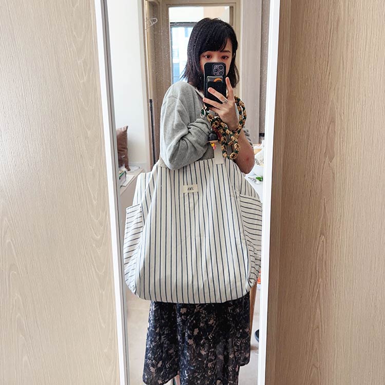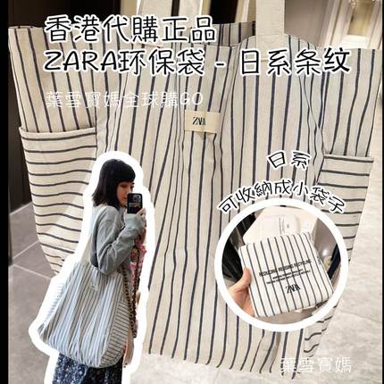 2025年正品zara环保袋日系条纹慵懒风港风限定帆布袋购物无印代购