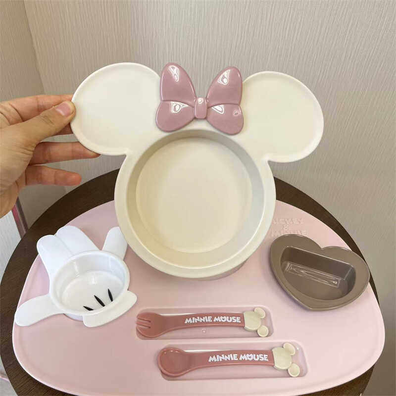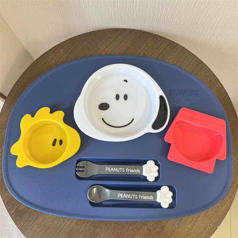 日本制锦化成米奇米妮史努比维尼儿童宝宝餐具餐盘礼盒可洗碗机