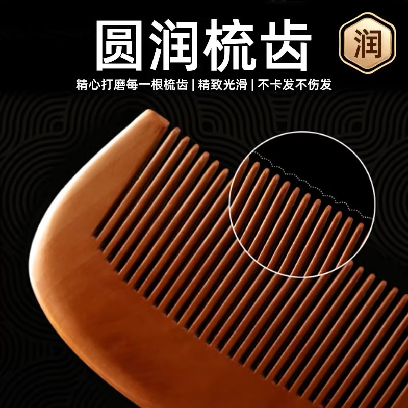 天然桃木檀木梳子牛角小男女士专用随身便携家用儿童女孩按摩头皮