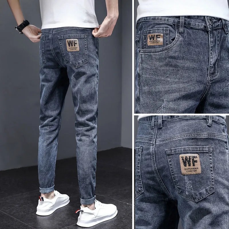 秋冬弹力加厚修身直筒弹力牛仔裤
