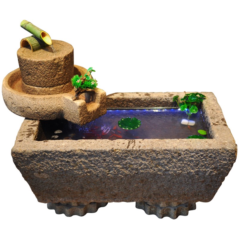 老石槽鱼缸花盆石磨流水组合户外庭院假山石盆景摆件景观砂岩石缸