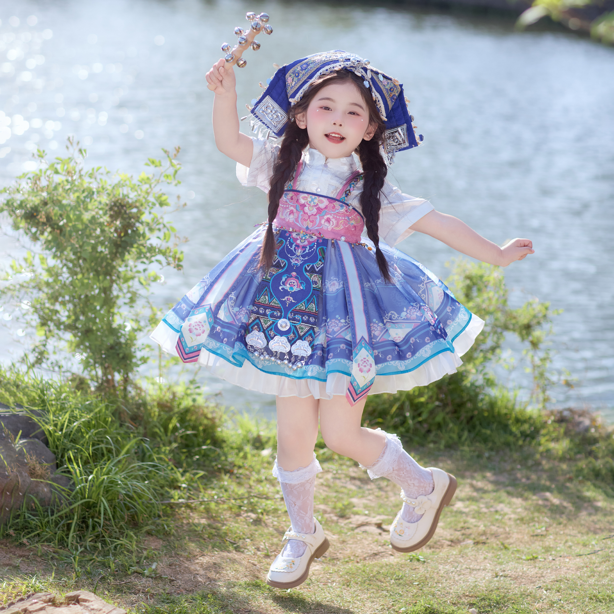 今兮古兮黛琳女童中国风秋民族汉服连衣裙儿童超仙绣花衬衣两件套