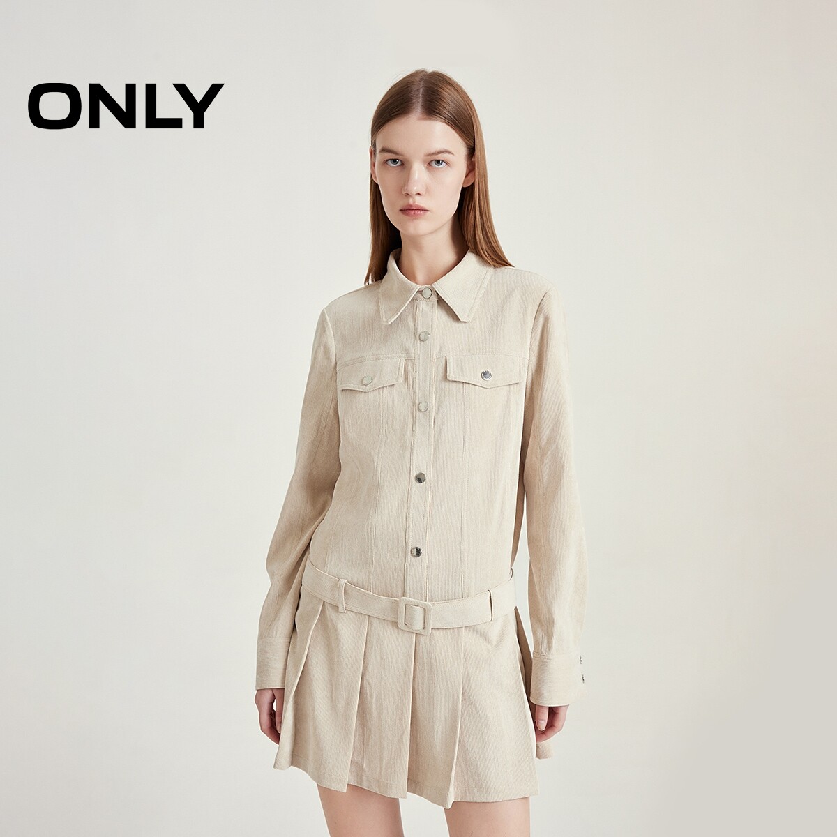 ONLY秋季工装风翻领百褶短裙衬衫连衣裙女|124307032