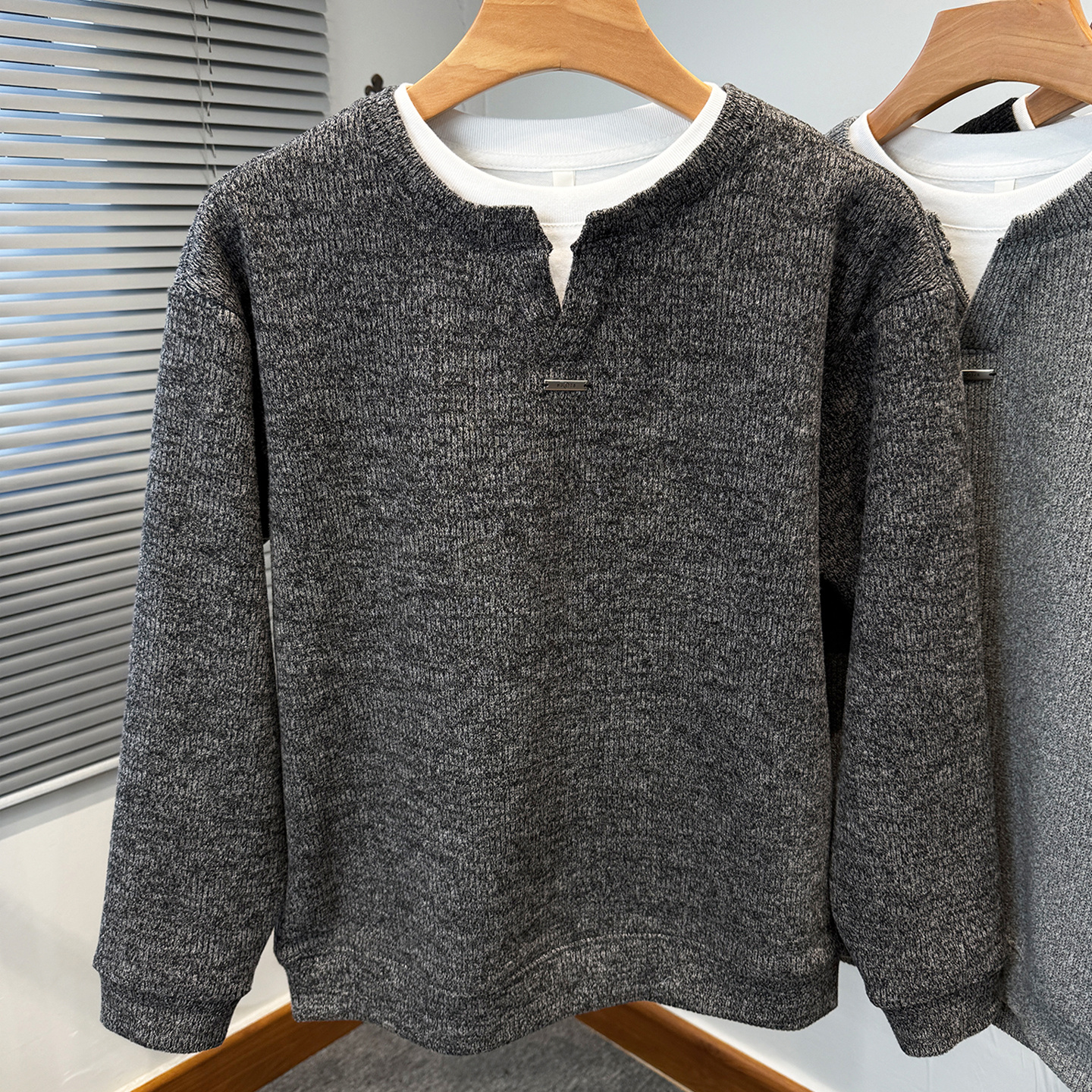 双层领假两件卫衣男加绒加厚韩版休闲针织t恤男装套头内搭上衣服