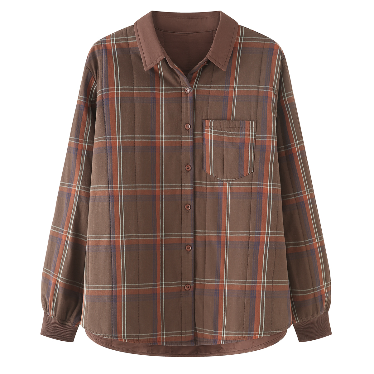 艾格复古夹棉长2025袖衬衫女宽松显瘦百搭文艺棉衣百搭休闲上衣