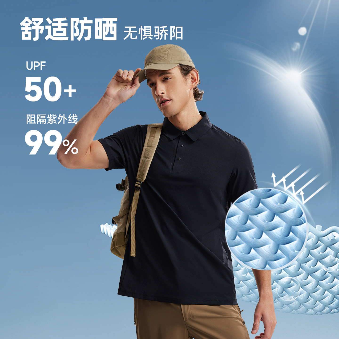 诺诗兰速干T恤男26款户外徒步防晒UPF50+排汗抑菌透气干爽POLO衫